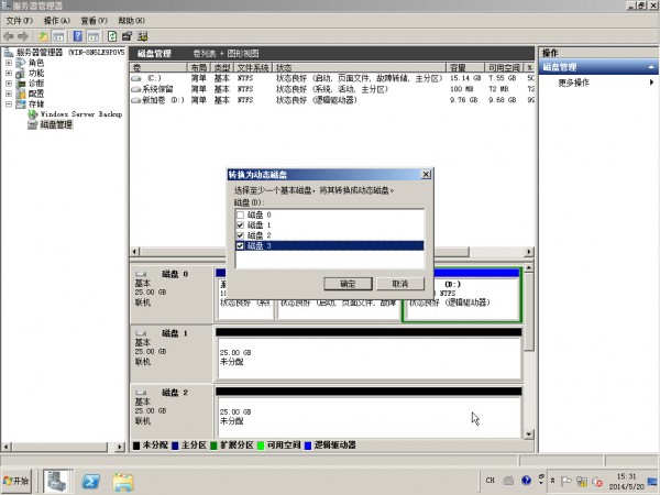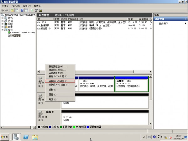 右键单击磁盘(不是分区),选择转换到动态磁盘