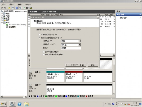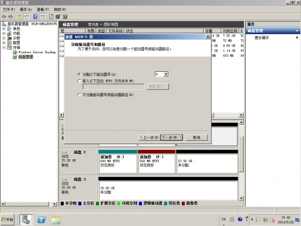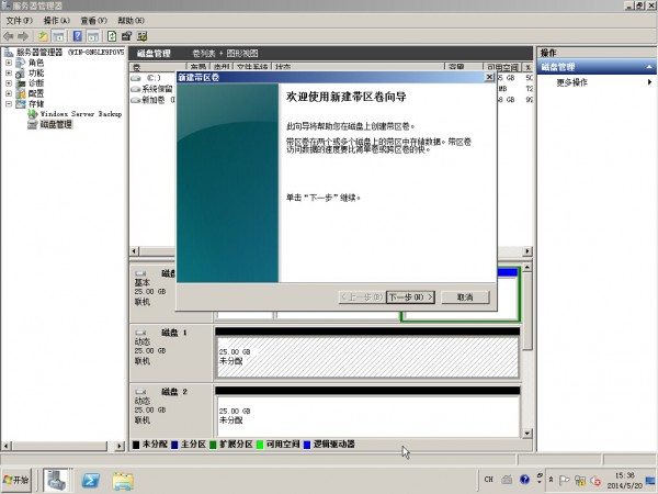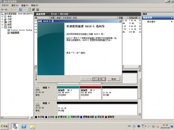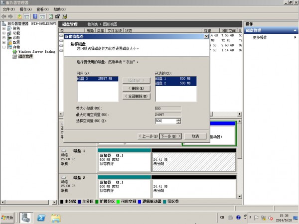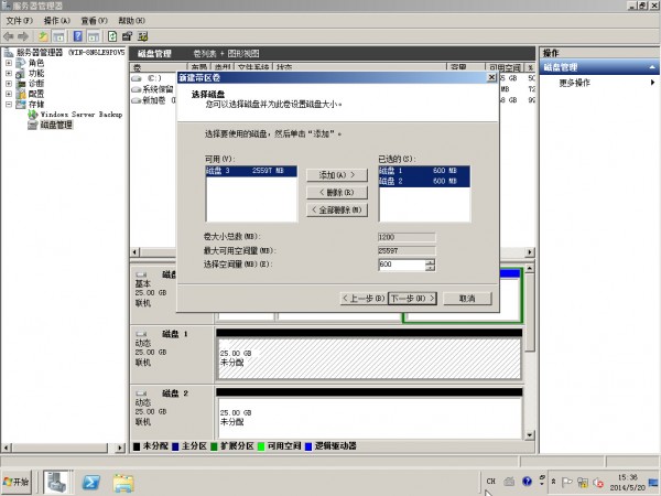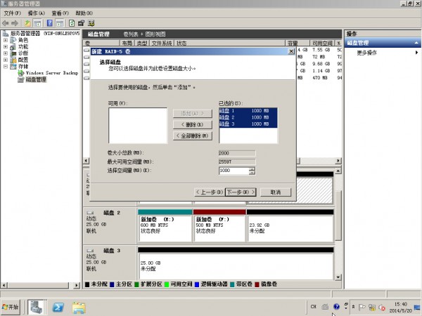 RAID0需要两个以上的磁盘 选择空间量那里可以设置大小