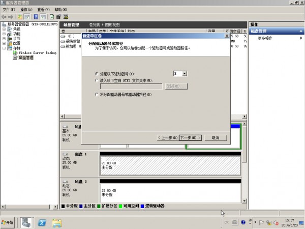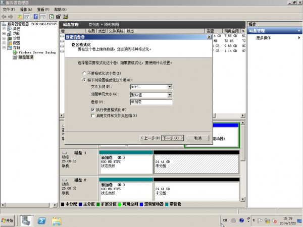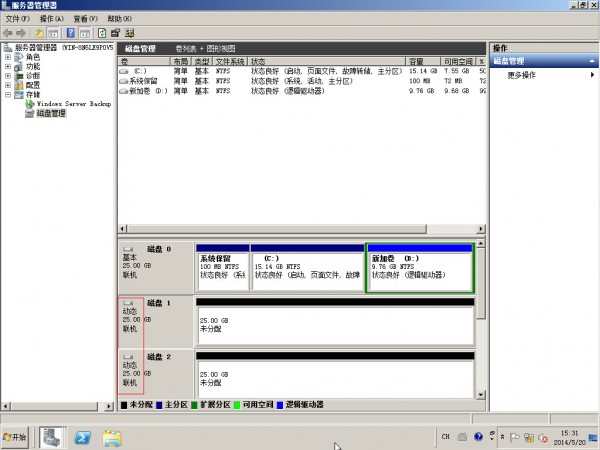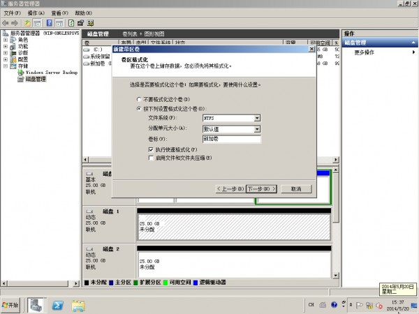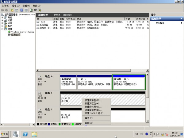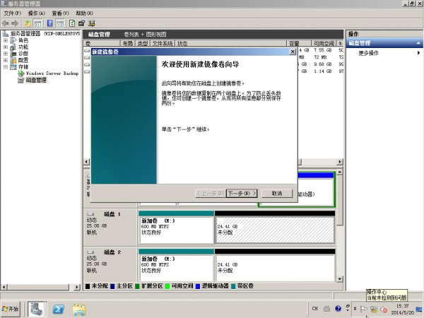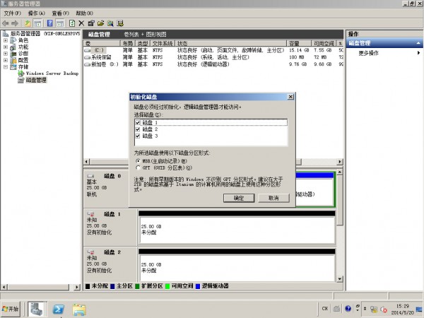 打开服务器管理界面 到存储-磁盘管理下,如果新增了硬盘的话 会跳出初始化磁盘界面,我们点击确定
